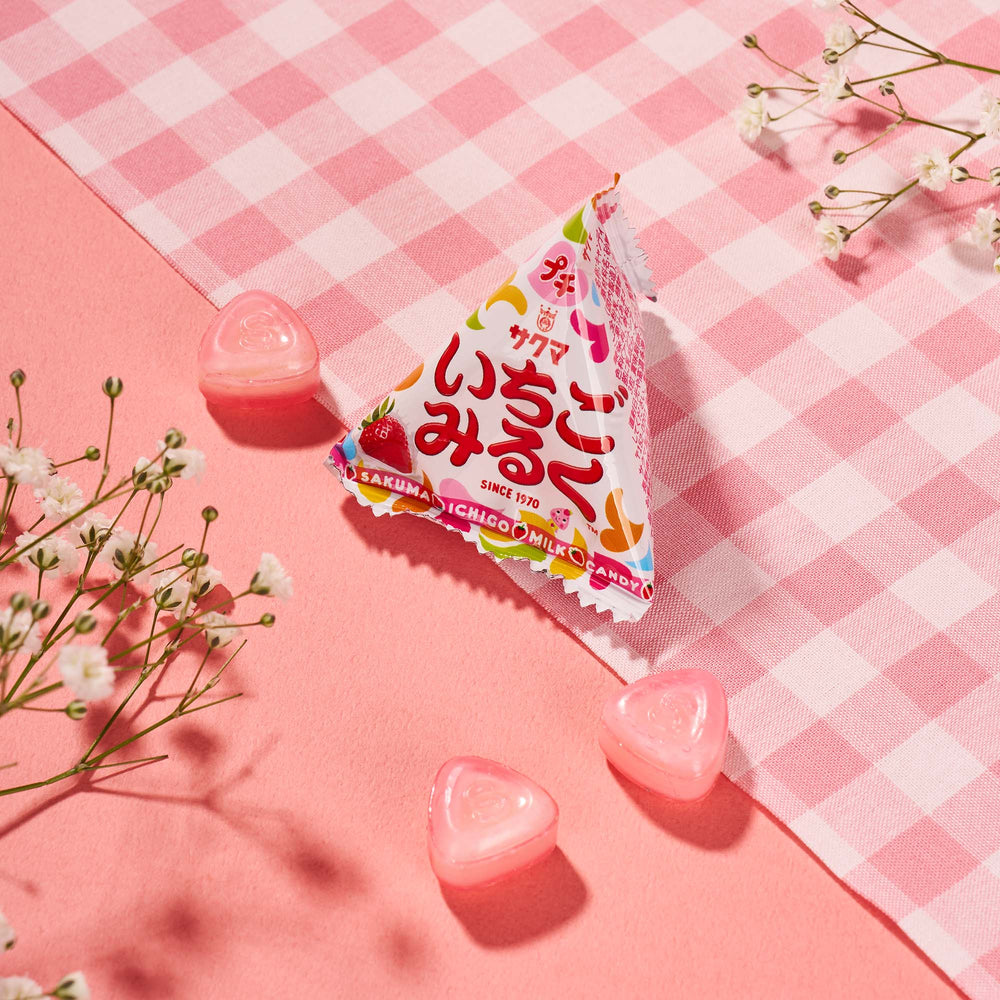 This pack of candy contains three pieces of crispy mille-feuille that's wrapped in strawberry candy for a satisfying bite!
