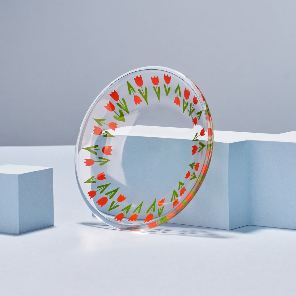 - Jun-kissa Retro Cafe Plate: Diameter 120mm (4.72") Height 18mm (0.71"); Not Dishwasher or microwave safe; This glass is not heat-resistant. Do not pour hot liquid into the glass.