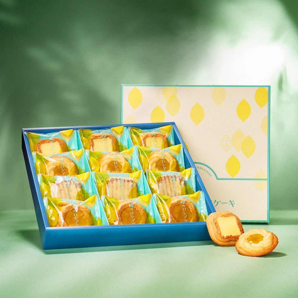 A longtime favorite in Japan, Russian cakes are soft, biscuit-like cookies made from twice-baked dough and decorated by hand. This seasonal set from Nakayama Confectionery highlights refreshing lemon and mellow chocolate in four thoughtfully crafted varieties: