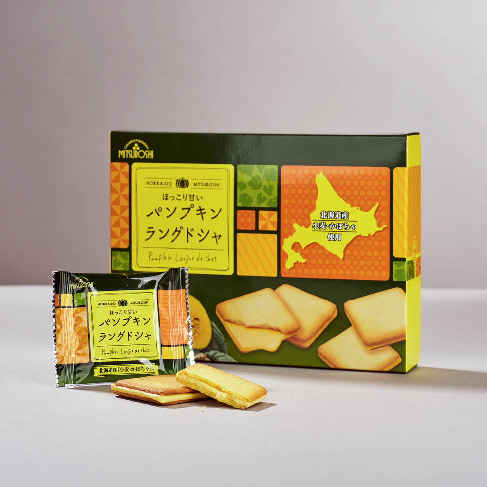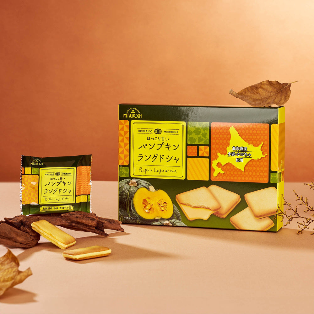 Fall is officially the season for everything pumpkin! For pumpkin lovers, we got you covered. These delicate sandwich cookies combine the sweet, earthy flavor of Hokkaido pumpkin with creamy white chocolate, all nestled between delicate langue de chat biscuits. A seasonal twist on a classic Hokkaido treat, made with 100% Hokkaido wheat and pumpkin.